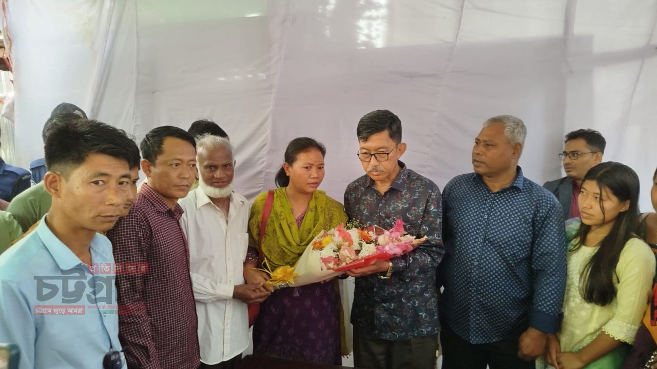 মন্ত্রী জনাব দীপেন দেওয়ান এমপি মহোদয়কে ফুলেল শুভেচ্ছা জানান বাংলাদেশের বিপ্লবী ওয়ার্কার্স পার্টি রাঙামাটি জেলা কমিটির সাধারণ সম্পাদক ও ত্রয়োদশ জাতীয় সংসদ নির্বাচন ও গণভোট-২০২৬ রাঙামাটি-২৯৯ আসনের সংসদ সদস্য কোদাল প্রতীক এর প্রতিদ্বন্দ্বী একমাত্র নারী প্রার্থী জুঁই চাকমা।