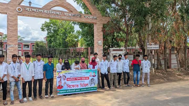 বাঙ্গালহালিয়া সরকারি কলেজে ঢাবি শিক্ষার্থী সাম্যের হত্যাকাণ্ডের প্রতিবাদে বিক্ষোভ মিছিল।