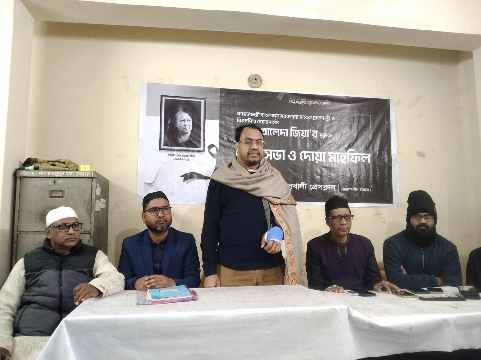 রাষ্ট্রীয় শোকের অংশ হিসেবে সাবেক প্রধানমন্ত্রী ও বিএনপি’র চেয়ারপার্সন বেগম খালেদা জিয়ার মৃত্যুতে বোয়ালখালী প্রেসক্লাবের আয়োজনে স্মরনসভা ও দোয়া মাহফিল অনুষ্ঠিত হয়েছে।