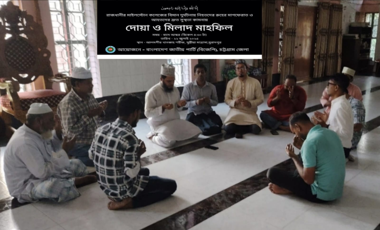 মাইলস্টোন ট্রাজেডি স্মরণে চট্টগ্রাম বিজেপি দোয়া ও মিলাদ মাহফিল